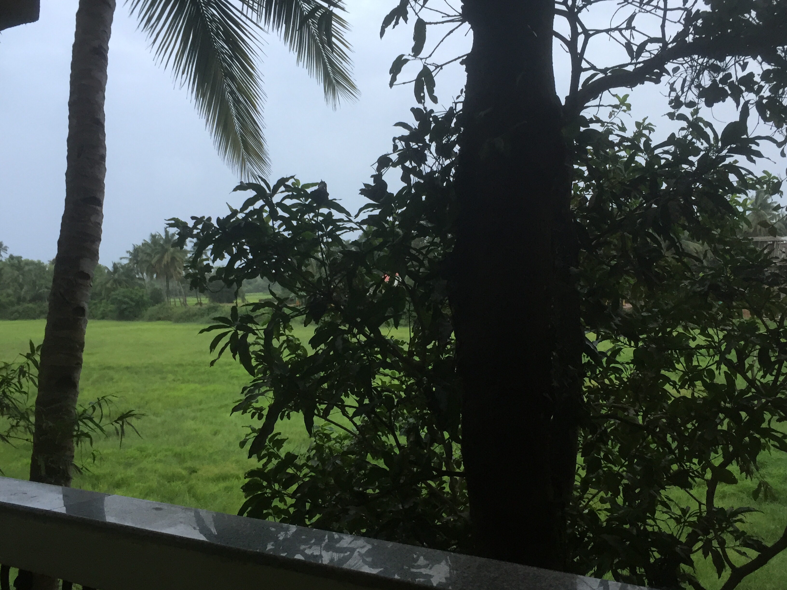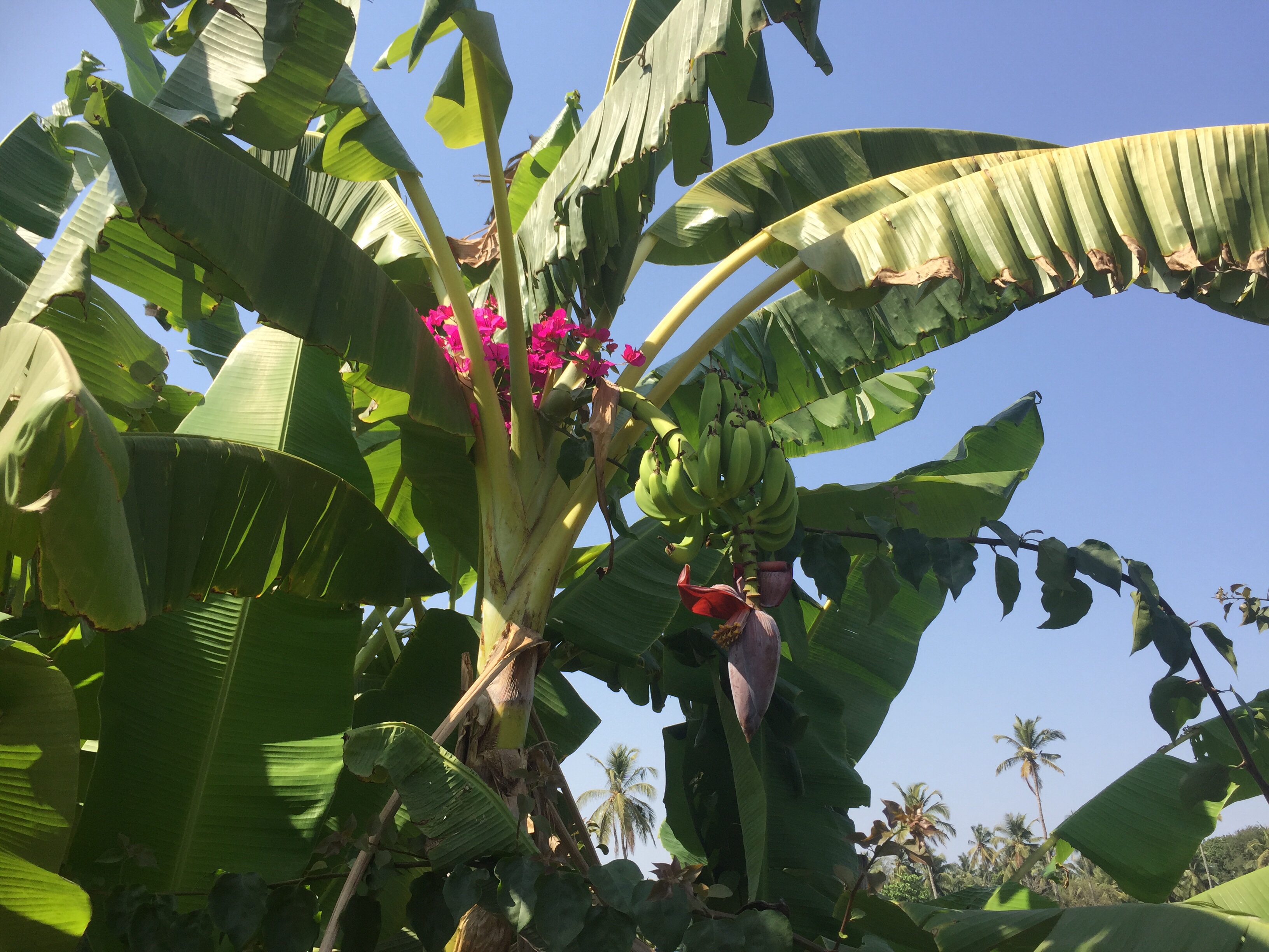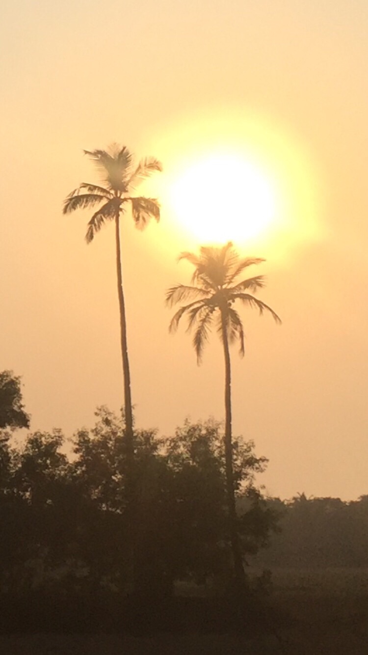 Sometimes, I just stop. I want to sit quietly on my scooter and just breath in my surroundings. I marvel at the sheer size of some of the leaves. So tropical! The bright green paddy fields, the roaming pigs on their way to nowhere in particular, the distant barking of a dog or the quick beep of a passing scooter. But it’s the sound of the coconut trees leaves in the breeze which flirt with my heart the most. As the long, thin leaflets brush together, it makes the sound of gentle rain. This is the sound I take home with me, nestled in my heart like a cosy memory, a sound which nourishes me through the long days and lonely evenings until I can return again to my beloved Goa.