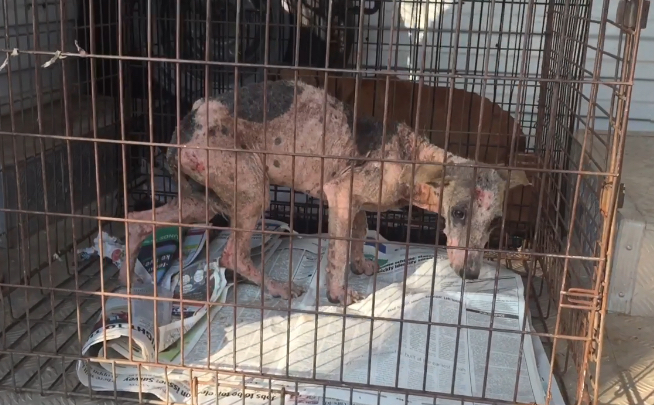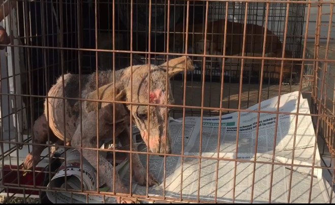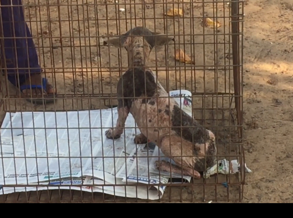 Fast forward to today ( February 2019) and I’m back in South Goa. On my scooter, I drove along the same route where I had seen the pup some six months previous. To my joy, he was still there! To my horror, sadness and despair, he was in the worst of worst conditions. He was slightly bigger, but not much so. I guess there’s only so much growing a baby can do when they’re starving beyond belief and so, so sick. The mange had got to him so severely that there was not a single bit of fur left on his poor, emaciated body. He was virtually a skeleton, barely possessing the strength enough to hold himself up.