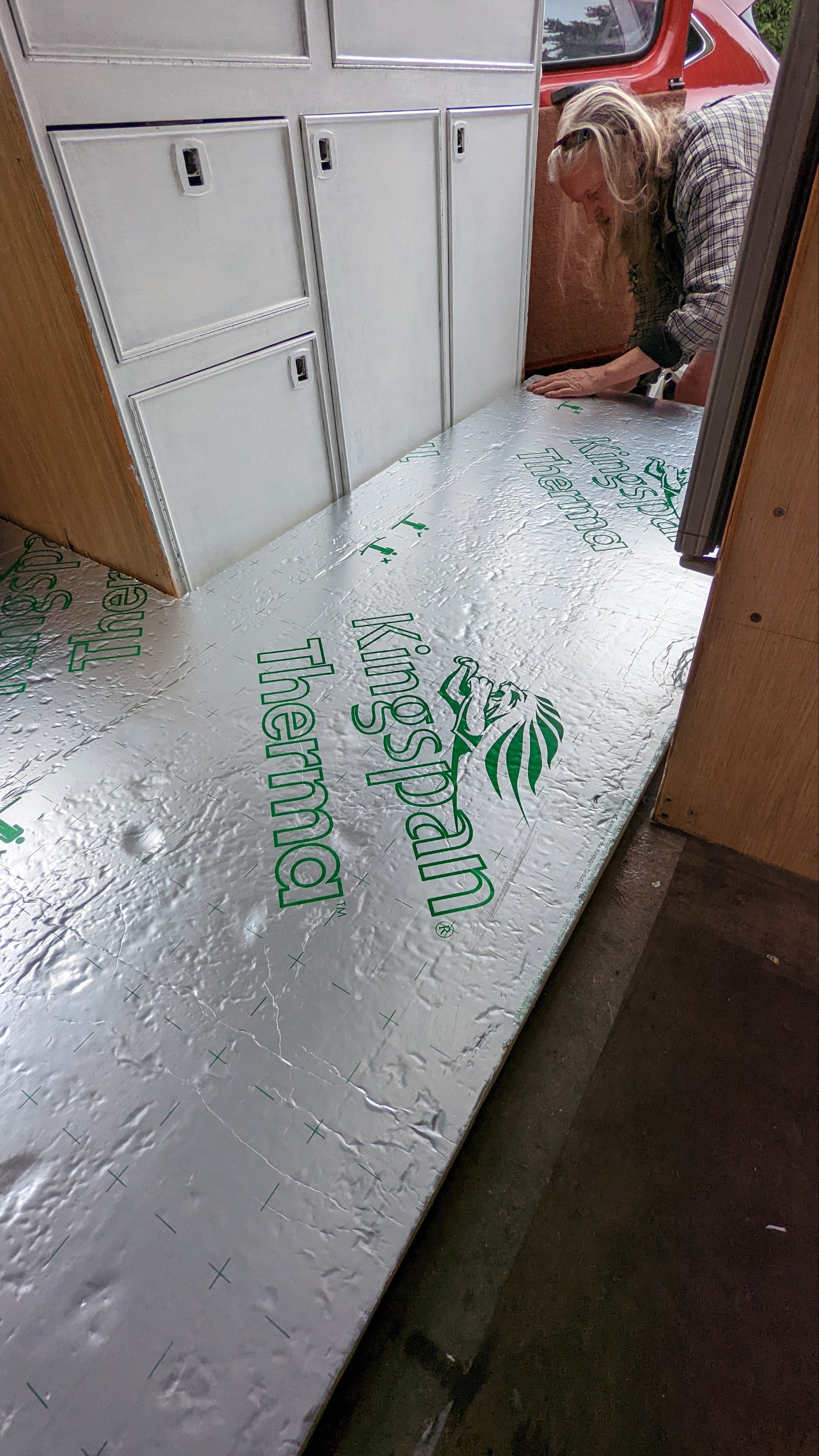 With regards insulating the ceiling, my mate happened to have a part roll of foil insulation left over from a project of hers. It was pretty much the perfect fit for my ceiling!