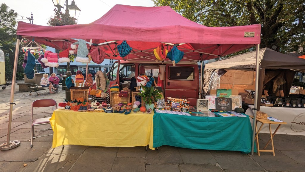 On September 30th, I launched my stall in the picturesque town of Horsham, and I’ve been there almost every Saturday since. The overwhelming support and positive feedback from customers have been a source of immense gratitude. Not only do people purchase my knitted creations, but they also appreciate the aesthetic appeal of my stall and the choice of yarn colors. The warmth and friendliness of the community have contributed to my overall sense of well-being. Despite experiencing moments of emotional lows and PTSD triggers, I’ve persevered and found inner strength to carry on.